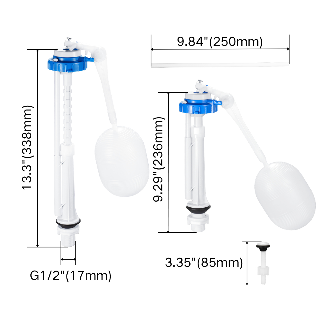 Product Name: 2 Inch Toilet Cistern Repair Kit Side Push Button | G1/2 Fill Valve & Single Flush Valve Set for Two Piece Toilet